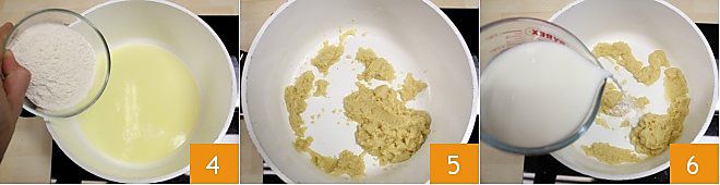 Bereiten Sie dann die Käsecreme zu: Schmelzen Sie die Butter in einem Topf und fügen Sie das gesiebte Mehl hinzu 4. Rühren Sie dann die beiden Zutaten mit einem Schneebesen, um das Roux zu bilden 5. An diesem Punkt gießen Sie die Milch in denselben Topf 6 und rühren weiter, während Sie die Hitze niedrig halten, bis Sie eine cremige und dicke Mischung erhalten.