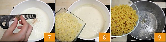 Schmecken Sie mit Salz, Pfeffer und Muskatnuss ab 7 und fügen Sie dann den geriebenen Käse hinzu. Kochen Sie weitere 7 Minuten unter ständigem Rühren, um die Zutaten zu mischen 8. Kochen Sie die Pasta in reichlich kochendem, nach Belieben gesalzenem Wasser 9.