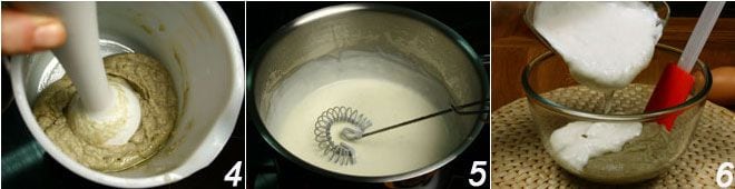 Nach dem Garen, wenn die Kochflüssigkeit vollständig verdampft ist, pfeffern und gegebenenfalls salzen. Wenn die Mischung abgekühlt ist, pürieren Sie sie, bis Sie eine glatte Creme erhalten 4. Bereiten Sie eine Béchamel zu, indem Sie die Butter in einem Topf schmelzen lassen; fügen Sie das Mehl hinzu und rühren Sie, um alle Klumpen zu beseitigen, dann fügen Sie die Milch, das Salz und den Muskat hinzu. Wenn die Béchamel dick ist 5, aber nicht zu dick, nehmen Sie sie vom Herd. Integrieren Sie die Béchamel in die Artischockencreme 6