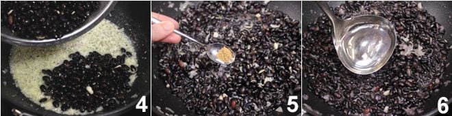Fügen Sie die Bohnen hinzu 4, eine Prise Kreuzkümmel und Koriander 5, bedecken Sie mit heißem Wasser 6 und lassen Sie sie etwa eine Stunde lang köcheln, bis die Bohnen weich geworden sind, dann mit Salz und Pfeffer abschmecken.