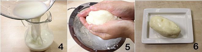 und geben Sie sie in einen Messbecher 4 (Sie erhalten etwa 250 g, die für 1-2 Tage im Kühlschrank aufbewahrt und zur Zubereitung von Kuchen anstelle von Milch verwendet werden können). Drücken Sie nun die Butter mit den Händen sehr gut aus 5, um das darin enthaltene Flüssigkeit vollständig austreten zu lassen: Dieser Vorgang ist sehr wichtig, da er es der Butter ermöglicht, sich länger zu halten und ein Ranzigwerden sowie eine Oxidation verhindert. Geben Sie der Butter schließlich die gewünschte Form... et voilà! Fertig ist Ihr selbstgemachter Butterblock 6.
