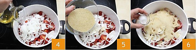Gießen Sie den Apfelessig 4 in die Mischung, die Sie zubereiten, fügen Sie auch den Rohrzucker 5 und das Salz 6 hinzu.