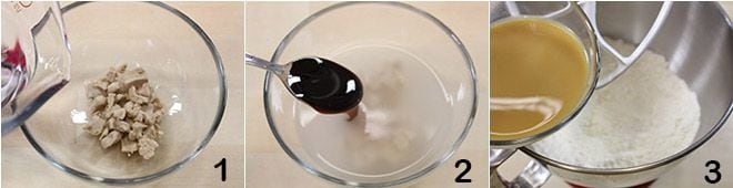 Um die Ciaccia mit Trauben zuzubereiten, beginnen Sie mit der Herstellung des Brotteigs: Lösen Sie die Hefe in etwas lauwarmem Wasser auf 1 (entnommen aus der gesamten Wassermenge, die für das Rezept vorgesehen ist) und fügen Sie einen Teelöffel Malz (oder Zucker oder Honig) hinzu 2, dann mischen Sie alles und lassen es einige Minuten ruhen. Geben Sie das gesiebte Mehl in eine Küchenmaschine, fügen Sie die Hefemischung, Wasser und Malz hinzu 3