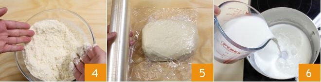 Kneten Sie mit den Händen, bis ein kompakter und elastischer Teig entsteht 4. Wickeln Sie den entstandenen Teig in Frischhaltefolie und lassen Sie ihn für mindestens 40 Minuten im Kühlschrank ruhen 5 (für eine ausführliche Anleitung zur Zubereitung von Mürbeteig Mürbeteig). In der Zwischenzeit bereiten Sie die Gruyère-Creme vor: Erwärmen Sie die Milch in einem kleinen Topf bei niedriger Hitze 6