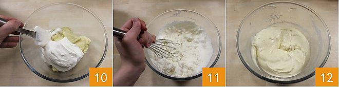 Wenn die Puddingcreme vollständig abgekühlt ist, fügen Sie die Chantilly-Creme hinzu 10 und rühren Sie die beiden Cremes mit einem Schneebesen, bis eine schaumige, glatte und homogene Masse entsteht 12. Ihre Diplomatencreme ist fertig!
