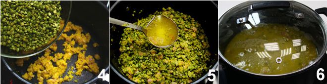 und geben Sie sie in den Topf 4, rühren Sie um, um sie zu würzen, und bedecken Sie dann die Erbsen mit heißer Gemüsebrühe 5. Decken Sie die Suppe ab 6 und lassen Sie sie bei niedriger Hitze köcheln (sie sollte leicht sieden), bis die Erbsen schön weich sind und zu zerfallen beginnen, das dauert etwa 60 Minuten.