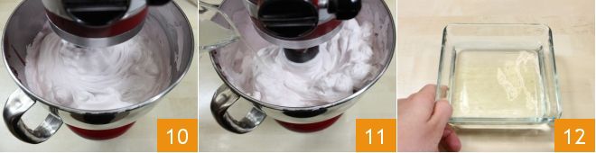 weiter schlagen, bis sie vollständig abgekühlt sind 10, für weitere Details konsultieren Sie die Anleitung zur italienischen Baiser. Fügen Sie schließlich den Saft einer halben Zitrone hinzu 11 und geben Sie die Mischung in eine Schüssel. Legen Sie nun die Gelatine für 10 Minuten in kaltes Wasser einweichen 12, wringen Sie sie nach dieser Zeit aus