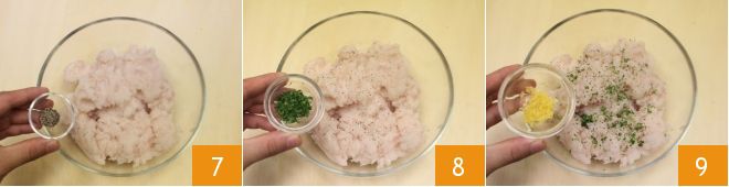 Pfeffer 7, gehackter Petersilie 8, Thymian und geriebener Zitronenschale 9,