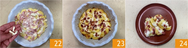 Fügen Sie einige Butterflocken hinzu 22 und backen Sie im vorgeheizten statischen Ofen bei 200° für 20-25 Minuten 23. Ihre überbackenen römischen Gnocchi sind bereit, serviert zu werden 24!