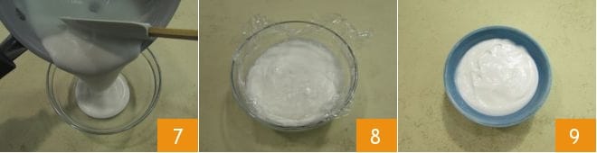 Gießen Sie die Mischung in eine Schüssel 7. Decken Sie sie mit Frischhaltefolie ab 8 und lassen Sie sie abkühlen, bevor Sie Ihre Kokoscreme genießen 9.