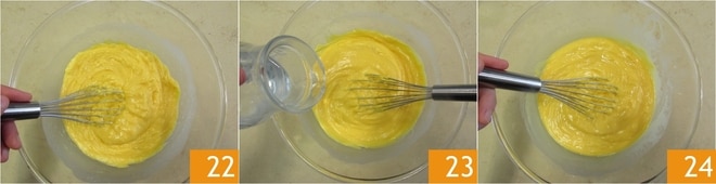 Sie sollten eine glatte Creme erhalten und die Butter sollte vollständig aufgenommen sein 22. Nun geben Sie den Likör in drei Portionen hinzu 23, während Sie weiter mit dem Schneebesen rühren. Sie erhalten eine glatte und glänzende Creme 24. Bewahren Sie sie bis zur Verwendung im Kühlschrank auf.
