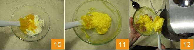 Fügen Sie dann die restlichen hinzu 10 und mischen Sie erneut, um eine homogene Emulsion zu erhalten 11. Fügen Sie nun die Hälfte davon in die laufende Küchenmaschine hinzu 12.
