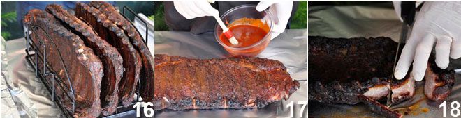 Das Endergebnis dieser Zubereitung sollte ein zartes und saftiges Fleisch sein, das sich mühelos vom Knochen löst und von einem wirklich erstaunlichen Geschmack geprägt ist. Um dieses Ergebnis zu erzielen, ist eine Niedrigtemperaturgarung (95°-110°) über einen längeren Zeitraum in einer ausreichend feuchten Umgebung notwendig. Das Räuchern erfolgt nur für einen begrenzten Zeitraum, etwa ein Drittel der gesamten Garzeit. Hier sind die Kansas City Sweet & Smoky Ribs.