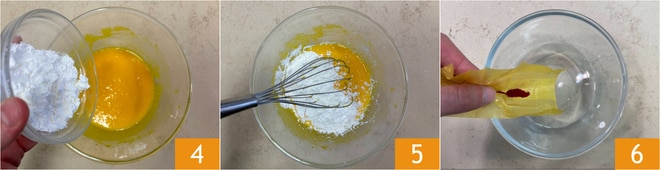 Fügen Sie die Maisstärke hinzu 4 und rühren Sie 5, bis sie eingearbeitet ist. Lösen Sie den Safran in einem Esslöffel heißem Wasser auf 6.