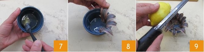 Zu diesem Zeitpunkt fetten Sie mit Hilfe eines Pinsels die Formen mit einem Durchmesser von 9 cm und einer Höhe von 5 cm ein 7. Legen Sie die Sardellenfilets vertikal entlang des Randes, bis die Form ausgekleidet ist, es werden etwa 10 Filets benötigt 8. Salzen, pfeffern und etwas Zitronenschale abreiben 9.