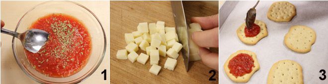 Um die Tomaten-Mozzarella-Fladen zuzubereiten, heizen Sie zuerst den Ofen auf 200 Grad vor, dann geben Sie die passierte Tomaten in eine Schüssel, fügen den Oregano, das Salz und die zwei Esslöffel Olivenöl hinzu, mischen Sie gut 1 und stellen Sie sie beiseite. Schneiden Sie den Mozzarella (oder den Provola) in kleine Würfel 2, nehmen Sie das Backblech und legen Sie es mit Backpapier aus, legen Sie die Fladen darauf, geben Sie einen Löffel Sauce auf jeden Snack 3 und bedecken Sie sie mit einigen Mozzarellahäppchen. Backen Sie für etwa 5 Minuten, die Zeit, die notwendig ist, um den Mozzarella zum Schmelzen zu bringen. Nach dem Backen nehmen Sie die Fladen heraus, garnieren Sie sie mit einigen Basilikumblättern und servieren Sie sie noch heiß.