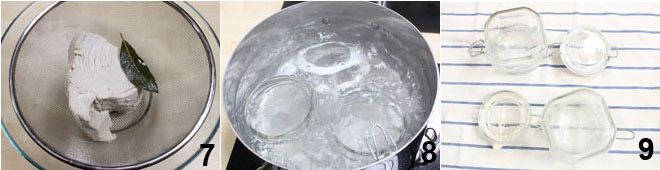 Nach Ablauf der Zeit lassen Sie ihn abtropfen und legen Sie ihn in ein Sieb in eine Schüssel, damit er 24 Stunden lang das überschüssige Wasser verliert 7. Wenn der Thunfisch vollständig trocken ist, fahren Sie mit der Sterilisation der Gläser fort, in denen Sie den in Öl eingelegten Thunfisch aufbewahren werden, gemäß den Richtlinien des Gesundheitsministeriums am Ende des Rezepts. Kochen Sie die Gläser etwa 30 Minuten lang in einem mit Wasser gefüllten Topf 8, dann lassen Sie sie vollständig trocknen, umgedreht auf einem sauberen Geschirrtuch 9.