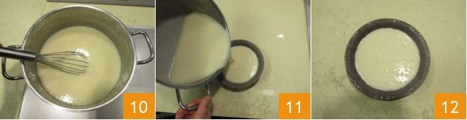 Kochen Sie weiter für 5-6 Minuten, bis die Béchamelsauce eingedickt ist 10. An diesem Punkt geben Sie sie in eine Schüssel, um das Kochen zu stoppen 11, und verwenden Sie sie nach Belieben 12.
