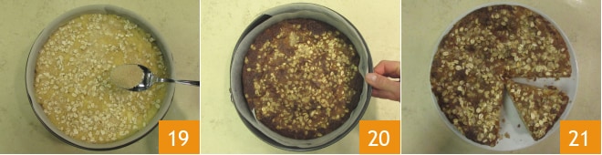 Zuletzt mit braunem Zucker bestreuen 19 und im vorgeheizten statischen Ofen bei 180 °C 45 Minuten backen, wobei die Backform auf dem mittleren Rost platziert wird. Sobald der Kuchen fertig ist, herausnehmen und abkühlen lassen 20. Ihr Apfelkuchen mit 4 Getreidesorten ist bereit, genossen zu werden 21!
