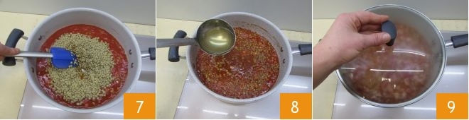 umrühren und die Linsen hinzufügen 7. Mit Salz und Pfeffer abschmecken, 500 Gramm Gemüsebrühe hinzufügen 8 und mit einem Deckel abdecken, bei niedriger Hitze etwa 45 Minuten kochen lassen 9. Wenn Sie bemerken, dass die Mischung zu trocken wird, können Sie noch etwas Brühe hinzufügen.