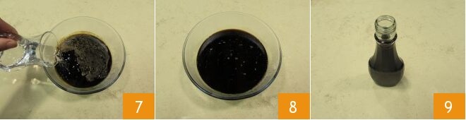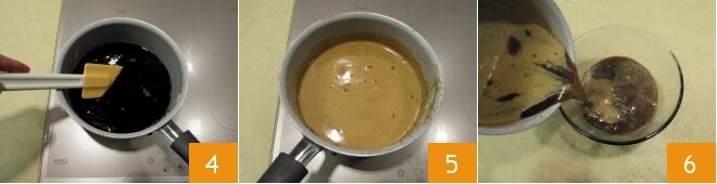 Um den Vorgang zu erleichtern, können Sie mit einem Spatel 4 oder einem Holzlöffel umrühren. Wenn der Zucker vollständig aufgelöst ist 5, gießen Sie die Mischung in eine kleine Schüssel zum Abkühlen 6.