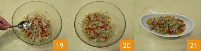 und fügen Sie sie dem Salat zusammen mit dem Essig hinzu 19. Mischen Sie noch einmal 20 und an diesem Punkt ist Ihr Nervettensalat bereit, um genossen zu werden 21.