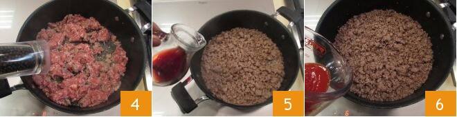 würzen Sie mit Pfeffer 4 und lassen Sie es 3-4 Minuten anbraten. Sobald die Wurst Farbe angenommen hat, mit Rotwein ablöschen 5, den Alkohol verdampfen lassen und dann die Tomatenpassata hinzufügen 6