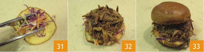 Jetzt können Sie Ihr Pulled Pork alleine genießen oder es verwenden, um ein fantastisches Sandwich zusammen mit dem unverzichtbaren Coleslaw 31 32 33 zuzubereiten!