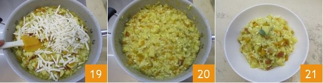 Vermengt ihn mit den anderen Zutaten 19: Euer Risotto mit Äpfeln, würzigem Kürbis und Salbei ist jetzt bereit 20, serviert zu werden 21 und genossen zu werden!