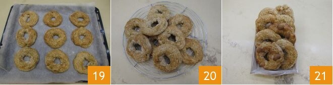 Backen Sie im vorgeheizten Ofen bei 180 °C für 25 Minuten, bis sie leicht goldbraun sind 19. Lassen Sie die Roccocò vor dem Servieren vollständig auf einem Gitter abkühlen 20. An diesem Punkt sind Ihre Roccocò bereit, genossen zu werden 21.