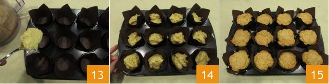 Platzieren Sie die Muffinförmchen in einer Muffinform und verwenden Sie einen Löffel, um den Teig hineinzugeben, ohne die 2/3 der Kapazität zu überschreiten (13-14); Sie sollten etwa 65 g Teig pro Förmchen verteilen. Backen Sie im vorgeheizten statischen Ofen bei 170° etwa 25 Minuten lang; machen Sie immer den Zahnstocher-Test und wenn sie fertig sind, nehmen Sie sie aus dem Ofen 15 und genießen Sie Ihre 5-Minuten-Muffins!