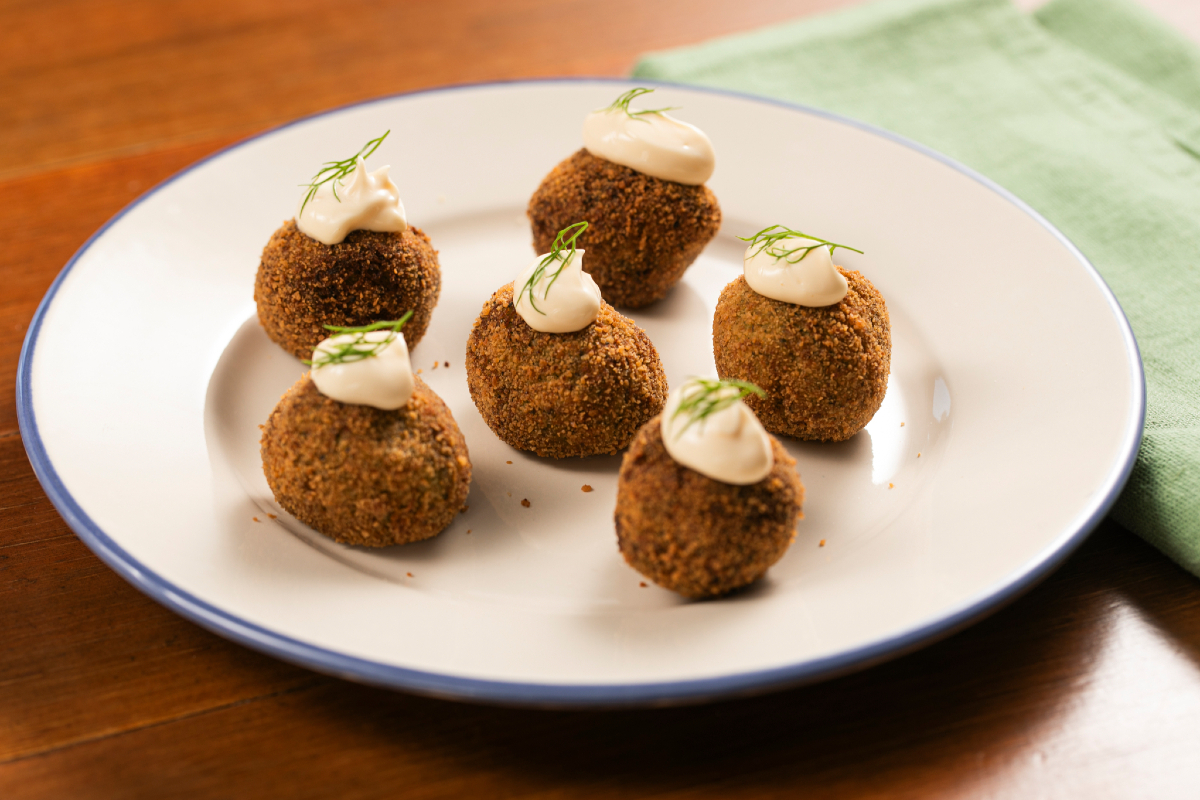 Außen knusprig und innen schön weich, werden sie mit einer pikanten Meerrettich-Mayonnaise serviert, die perfekt zu ihrem zarten Geschmack passt.