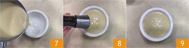 Wenn die Soße die gewünschte Konsistenz erreicht hat, geben Sie sie in eine hitzebeständige Schüssel, um sie zu servieren 7. Nun können Sie sie nach Belieben mit Salz abschmecken, falls die Brühe nicht schon salzig genug ist, und eine großzügige Prise schwarzen Pfeffer hinzufügen, um den Geschmack der Soße zu betonen 8. Rühren Sie noch einmal um und Ihre Gravy-Soße ist fertig: warm, duftend und umhüllend 9.