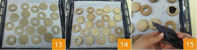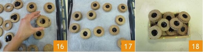 Dann legt die ausgestochenen Kekse leicht drückend darauf: Auf diese Weise verteilt sich die Marmelade in der Mitte auch entlang des Randes, ausreichend, damit sie nicht überläuft 16. So weiterfahren, bis alle fertig sind 17. Hier sind eure Buchweizenkekse fertig: jetzt müsst ihr sie nur noch genießen 18!
