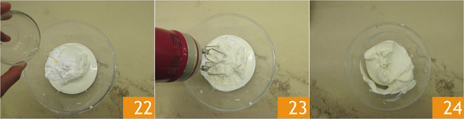 Eine Prise Zitronensaft dazugeben 22. Kurz mit den elektrischen Schneebesen die Creme aufschlagen 23 24.