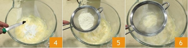 wenn die Masse homogen ist, schalten Sie die Maschine aus und rühren Sie den Puderzucker ein. Teilen Sie die Vanilleschote der Länge nach auf, kratzen Sie die Samen heraus und fügen Sie sie dem Teig hinzu 4. Sieben Sie das Mehl Typ 00 5 und das Mandelmehl 6 direkt in die Schüssel,