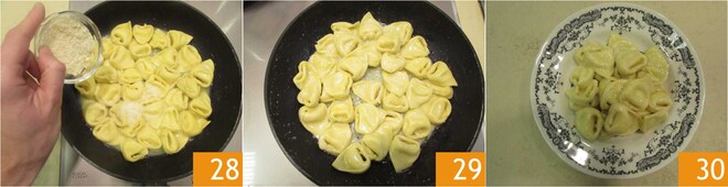 Würzen Sie mit geriebenem Grana Padano DOP 28, mischen Sie, um zu emulgieren und sie sind bereit 29 zum Anrichten 30.