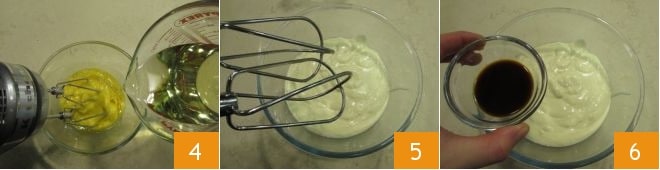 Beginnen Sie, alles mit dem elektrischen Schneebesen bei mittlerer Geschwindigkeit zu schlagen, während Sie das Pflanzenöl in einem dünnen Strahl 4 eingießen, und schlagen Sie die Mischung weiter, ohne die Geschwindigkeit zu ändern, bis die Mayonnaise gut aufgeschlagen ist 5. Zu diesem Zeitpunkt die Worcestershire-Soße hinzufügen 6.