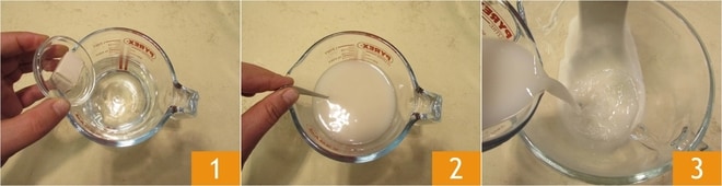 Um den zerrissenen Casatiello zuzubereiten, fügen Sie zuerst die frische Bierhefe zum Wasser bei Raumtemperatur hinzu 1 und rühren Sie, um sie aufzulösen 2. Gießen Sie die Mischung in die Schüssel einer Küchenmaschine mit Knethaken 3.
