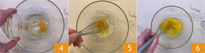 Würzen Sie mit Rum 4 und mischen Sie mit dem Schneebesen 5 6.