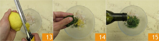 Würzen Sie das Scampi-Tartar mit Zitronenschale 13, Petersilie, Öl