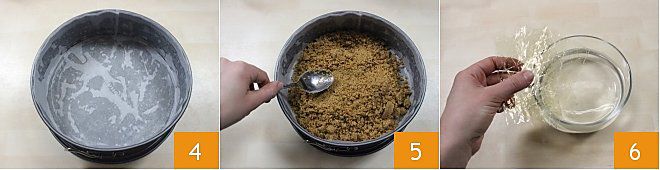 Fetten Sie eine Springform von 22 cm ein 4 (sehen Sie, wie es geht mit dem Kochschule: eine Kuchenform auslegen) und geben Sie die Keks-Butter-Mischung hinein, verteilen Sie sie gleichmäßig und drücken Sie sie gut mit der Rückseite eines Löffels fest 5. Stellen Sie den Keksboden für 30 Minuten in den Kühlschrank (oder für 10 Minuten in den Gefrierschrank). Bereiten Sie nun die Creme vor: Weichen Sie die Gelatineblätter für 10 Minuten in kaltem Wasser ein 6.
