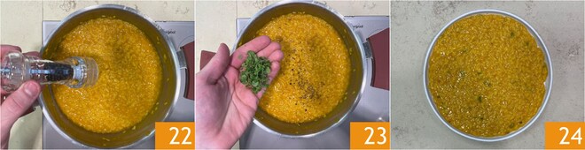 Fügen Sie den Pfeffer 22 und den Majoran hinzu 23. Lassen Sie das Risotto einige Minuten ruhen und richten Sie es dann an 24.