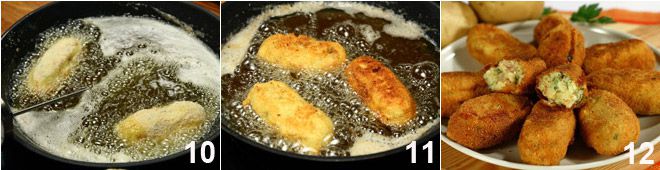 und schließlich in heißem Öl frittieren und auf beiden Seiten goldbraun braten lassen. (10-11) Auf ein Blatt Küchenpapier abtropfen lassen und heiß servieren 12.
