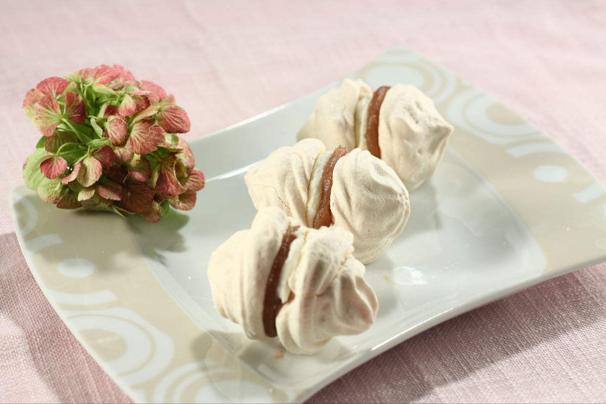 Das von uns vorgeschlagene Rezept sieht eine köstliche Füllung vor, die sehr einfach und schnell zuzubereiten ist: Schlagsahne und Maronencreme, eingeschlossen in zwei weichen Baisers.