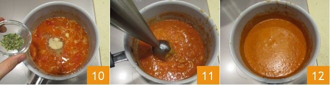 und verleiht der Sauce Aroma mit getrocknetem Oregano 10. Salzt und pfeffert sie; kocht sie dann weitere 10 Minuten und püriert sie dann mit einem Stabmixer, um eine gleichmäßige, klumpenfreie Sauce zu erhalten 11. Lasst die Sauce auf dem Herd weitere 5 Minuten andicken. Sobald sie fertig ist 12, lasst die Enchilada-Sauce vor dem Servieren abkühlen.
