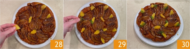 Die Oberfläche mit den Orangenspalten 28 und ein paar Zweigen Fenchelgrün 29 garnieren. Eure Fenchel-Tatin ist servierbereit 30!
