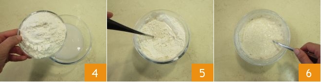 Mischt erneut, bis alles vermengt ist 4, stellt es in ein Glas 5, entfernt immer die Dichtung, und schließt den Verschluss 6. Stellt es in den Kühlschrank und wartet 24 Stunden, bevor ihr den Teig für eure Zubereitungen verwendet.