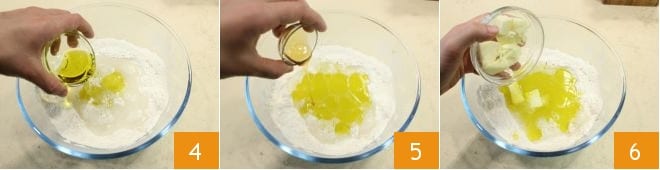 dann das Öl 4, den Honig 5 und die weiche Butter hinzufügen 6.