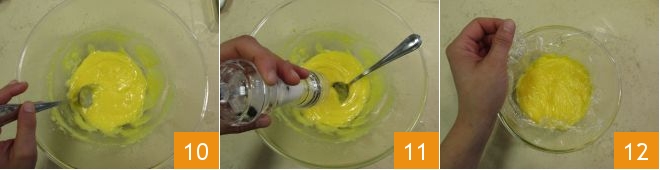 Sie sollte glatt, dick und cremig sein 10. Fügen Sie dann eine Prise Salz hinzu 11 und decken Sie die Schüssel mit Frischhaltefolie ab 12.